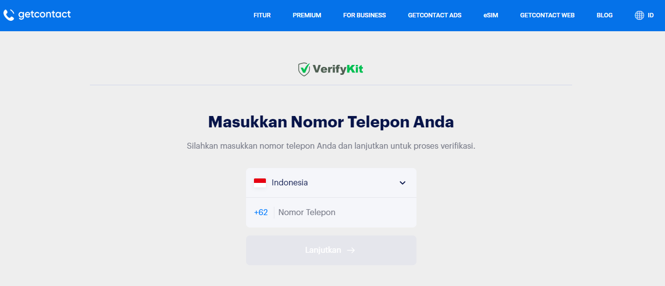 - Masuk dengan menggunakan nomor HP yang telah terdaftar di GetContact.