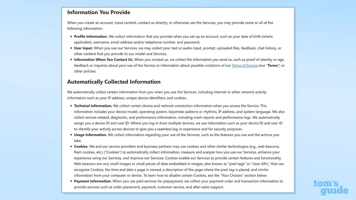 DeepSeek juga mengumpulkan alamat IP, alamat email, kuki, informasi pembayaran, dan setiap interaksi pengguna dengan alat chatting-nya. Aplikasi ini juga memberi pengguna perangkat dan ID pengguna, yang berarti pengguna bisa dilacak di beberapa perangkat.