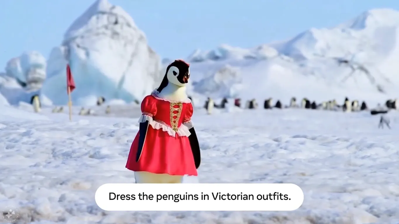 Pengguna juga bisa mengunggah video dan mengeditnya menggunakan Meta Movie Gen. Contohnya, pengguna bisa mengunggah video pinguin lalu menulis perintah untuk mengedit pinguin menggunakan gaun era Victoria, menambahkan payung dan kursi pantai, atau mengubah video tersebut menjadi sketsa pensil.