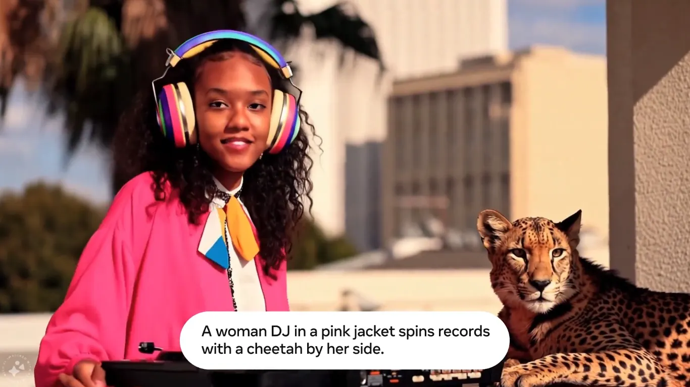 Selain itu, pengguna juga bisa membuat video yang dipersonalisasi. Caranya, pengguna hanya perlu mengunggah foto selfienya dan menulis perintah misalnya “Seorang DJ perempuan dengan balutan jaket pink dengan seekor citah di sebelahnya”. Meta Movie Gen akan membuatkan Anda video sesuai perintah dengan wajah Anda.