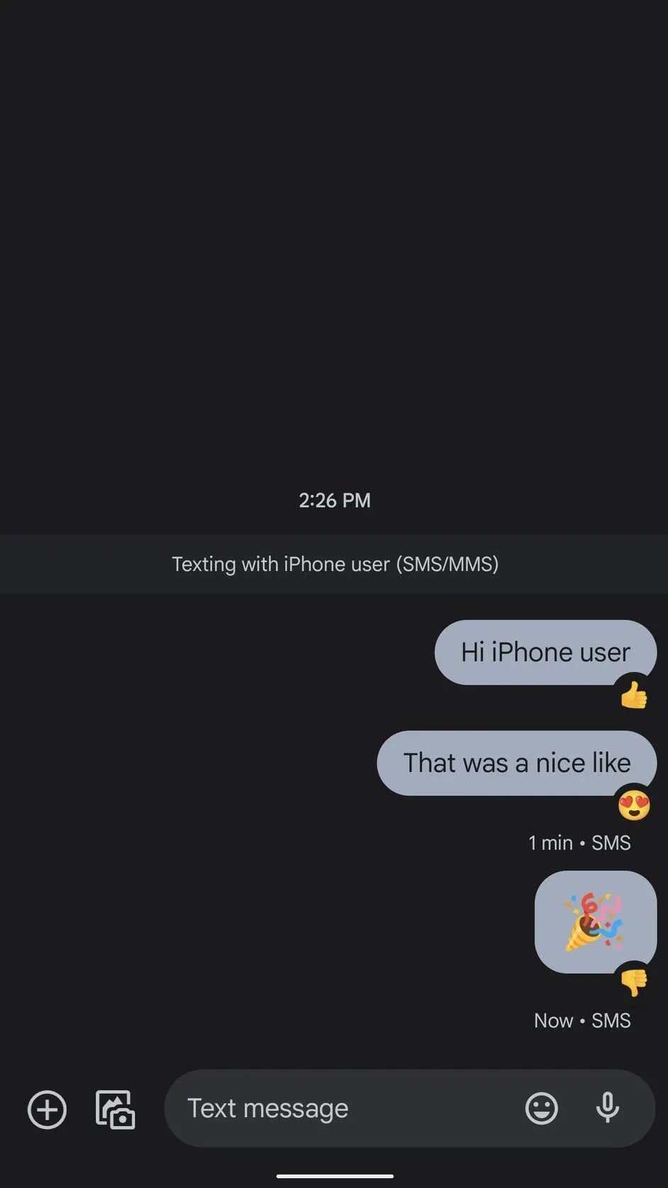 Sebelumnya, ketika pengguna iPhone bereaksi terhadap pesan pengguna Android menggunakan emoji, pesan tersebut muncul sebagai pesan teks terpisah saat diterima di Android, sering kali mengakibatkan kebingungan dan banyak kekacauan yang tidak perlu.