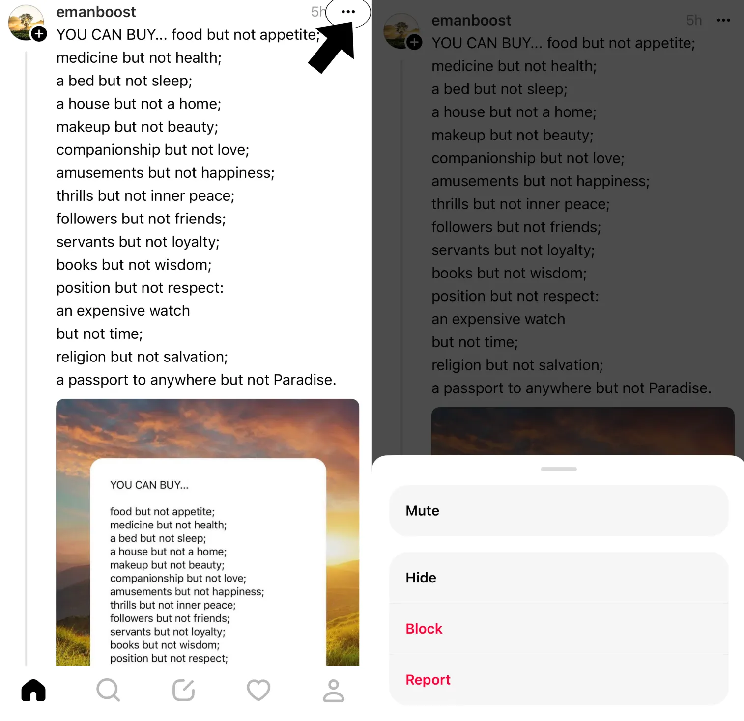 Salah satu cara untuk meningkatkan pengalaman anda di Threads adalah dengan mute akun yang tidak menarik bagi anda. Threads menampilkan pembaruan dari akun-akun yang mungkin tidak relevan atau menarik bagi anda. Untuk membersihkan menu utama Threads, matikan akun-akun yang tidak anda minati.