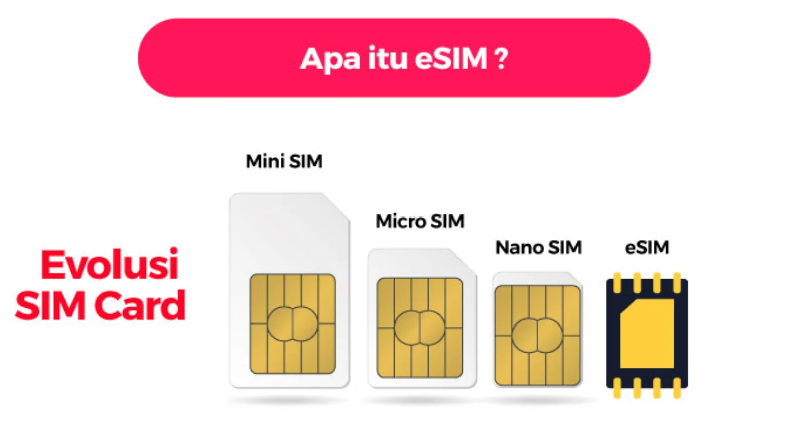 Bagi kamu yang belum tahu, eSIM (Embedded Subscriber Identity Module atau Modul Identitas Pelanggan Tersemat), merupakan bentuk baru dari kartu SIM yang langsung terhubung ke perangkat mobile atau gadgetmu. Berbeda dari kartu SIM fisik yang hanya bisa dimasukkan satu, eSIM bisa menyimpan beberapa nomor identifikasi sekaligus. Jadi, kamu tidak perlu repot lagi melepas atau memasang SIM card. Jika dulu perlu mengganti SIM card setiap ke luar negeri, dengan eSIM, sekarang kamu cukup mengaktifkannya tanpa perlu ganti lagi.