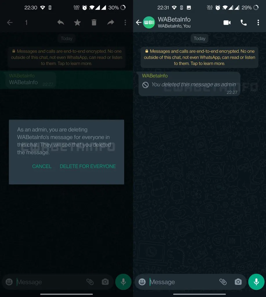 Saat ini, fitur ini baru disebarkan ke beberapa pengguna untuk uji coba kelayakan. Untuk mengetahui fitur tersebut telah tersedia, admin dapat memasuki grup dan melihat apakah ada opsi untuk menghapus obrolan anggotanya. Jika melihat opsi "hapus untuk semua orang", itu berarti fitur tersebut sudah tersedia