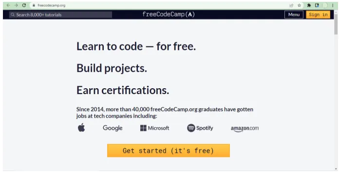 FreeCodeCamp merupakan salah satu dari sekian banyak platform pembelajaran coding online gratis dengan menyediakan layanan menarik. Platform ini menyediakan komunikasi real life dan kalian juga bisa berinteraksi dengan komunitas seputar pembelajaran bahasa pemrograman.