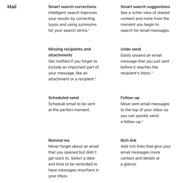Fitur Mail baru akan tersedia di macOS Ventura, iPadOS 16, dan iOS 16 saat dirilis musim gugur ini. Kita dapat melihat daftar lengkap dari apa yang akan datang di tangkapan layar ini, diambil dari halaman Semua Fitur Baru macOS Ventura Apple.