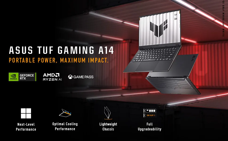 Asus TUF Gaming A14 dirancang untuk menjadi perangkat yang sangat portabel. Dengan bobot yang lebih ringan dan profil yang tipis, pengguna dapat dengan mudah membawa kekuatan stasiun kerja ke mana pun mereka pergi.