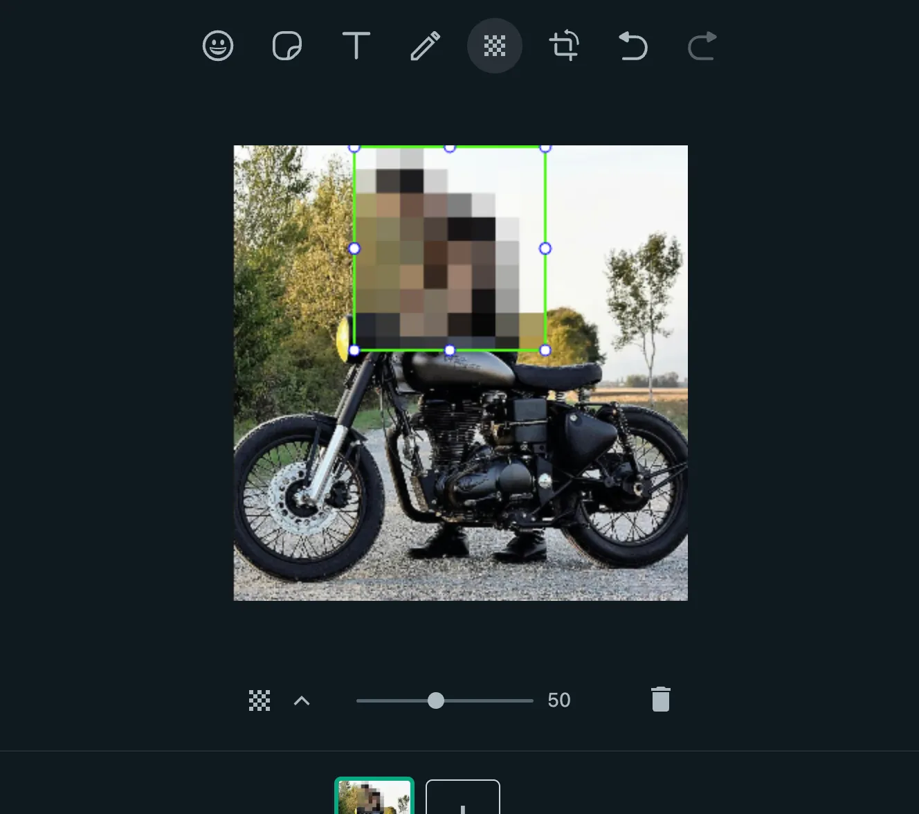 Fitur blur foto WhatsApp ini bisa digunakan ketika pengguna ingin mengirim gambar, fitur tersebut terdapat di toolbar penyunting gambar tepatnya terletak di tengah-tengah yang berpentik ikon piksel persegi.