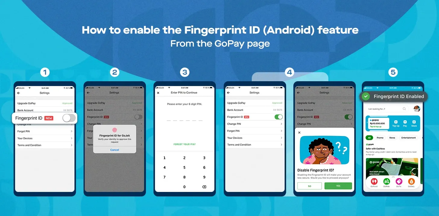 Dilansir dari Iaman blog resmi Gojek, Kamis (10/9) fitur verifikasi sidik jari telah tersedia di platform Android dan iOS, sedangkan fitur verifikasi wajah saat ini baru tersedia di iOS. Mengaktifkan fitur-fitur tersebut sangatlah mudah, yuk simak caranya di bawah ini.