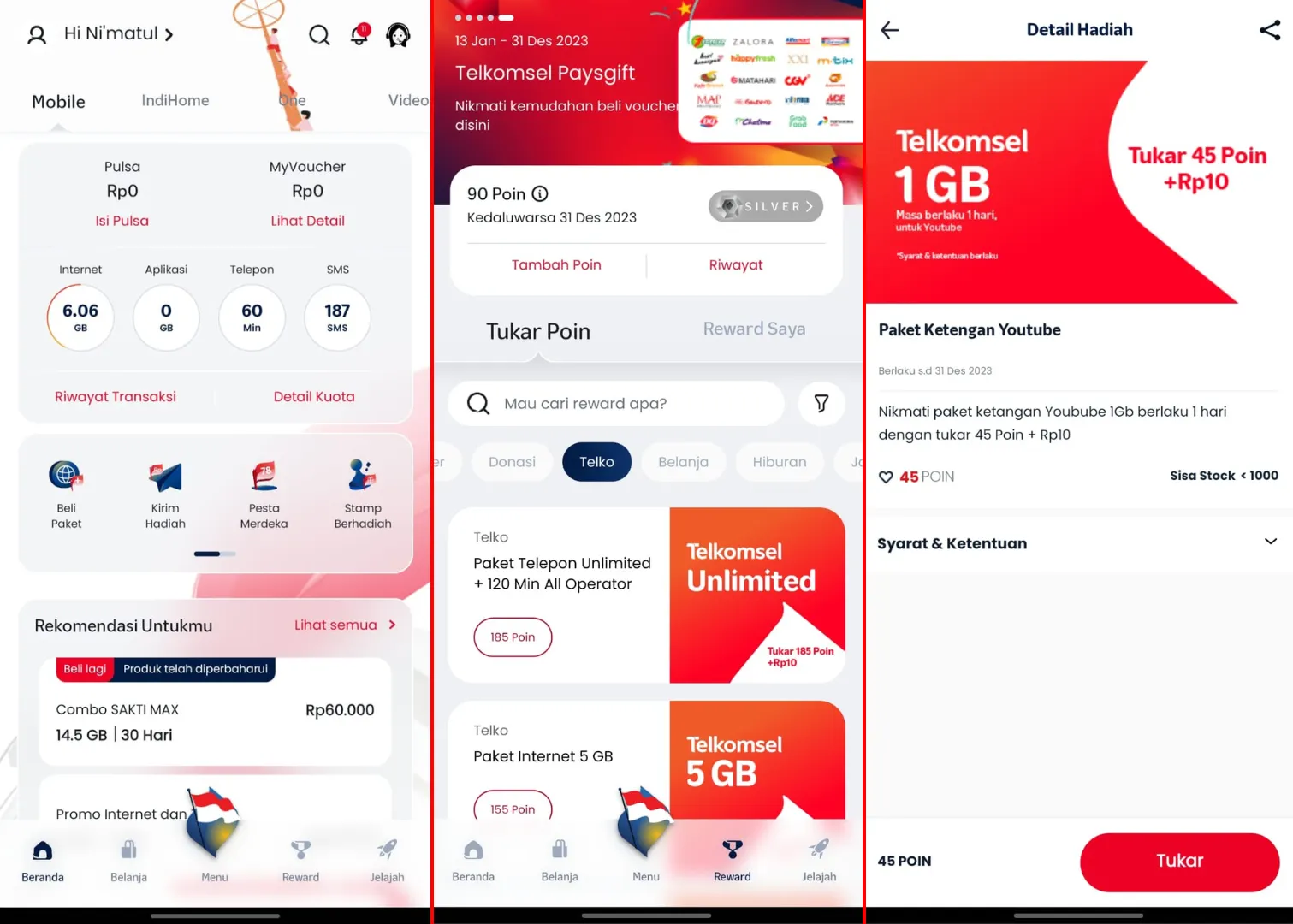 Kemudian, poin-poin tadi dapat dikumpulkan dan ditukarkan dengan bermacam-macam hadiah atau reward yang telah ditawarkan oleh Telkomsel sesuai dengan keinginan pengguna provider tersebut. Untuk menukar poin tersebut sangatlah mudah dan bisa dilakukan melalui aplikasi MyTelkomsel. Berikut penjelasan lengkap cara menukar poin Telkomsel.