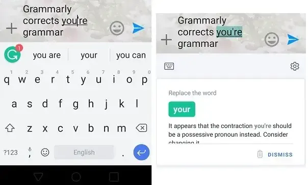Setelah kalian menginstal aplikasi Grammarly, aplikasi ini akan memberikan koreksi secara otomatis terhadap grammar yang kalian ketik. Koreksi ini bisa kalian abaikan ataupun terima dengan mengklik pada balon yang muncul. Berdasarkan pengalaman pribadi kami, aplikasi ini cukup akurat sekitar sembilan puluh sembilan persen. Grammarly menyediakan penggunanya versi gratis, tetapi mereka juga menyediakan versi premium untuk fitur yang lebih lengkap. Aplikasi ini juga akan meminta kalian untuk memberikan penilaian atau feedback melalui logo emoticon yang muncul.