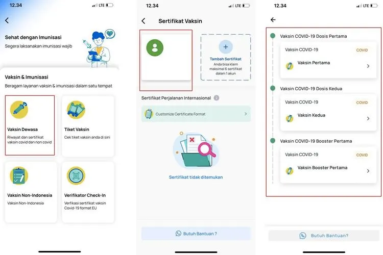 - Selanjutnya, pengguna akan diarahkan ke halaman yang berisi daftar sertifikat vaksin digital dari semua tahap yang telah dilakukan.
