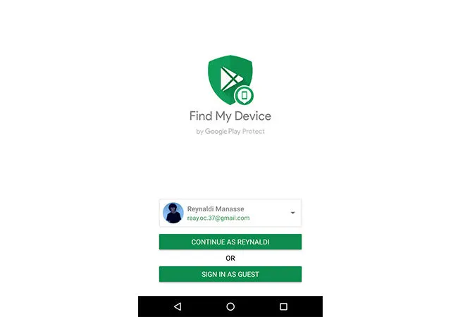 Inilah pentingnya mengingat email dan password Gmail. Dalam keadaan genting seperti kehilangan ponsel ini, kamu harus login dengan menggunakan akun Gmail di aplikasi Find My Device. Pilih opsi Sign In as Guest untuk masuk ke akun Gmail yang sesuai dengan akun Gmail di ponselmu yang hilang.