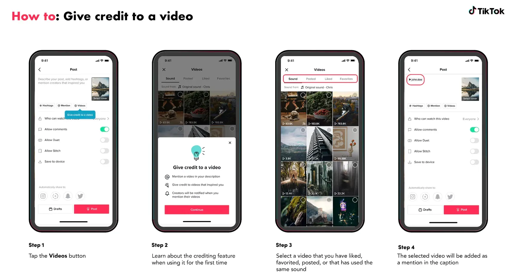 Teknologi.id – TikTok menawarkan kepada pengguna cara baru untuk memberikan kredit di video mereka. Saat mengunggah konten, pengguna tidak hanya dapat menandai pembuat konten individu dalam deskripsi video, tetapi juga video tertentu.