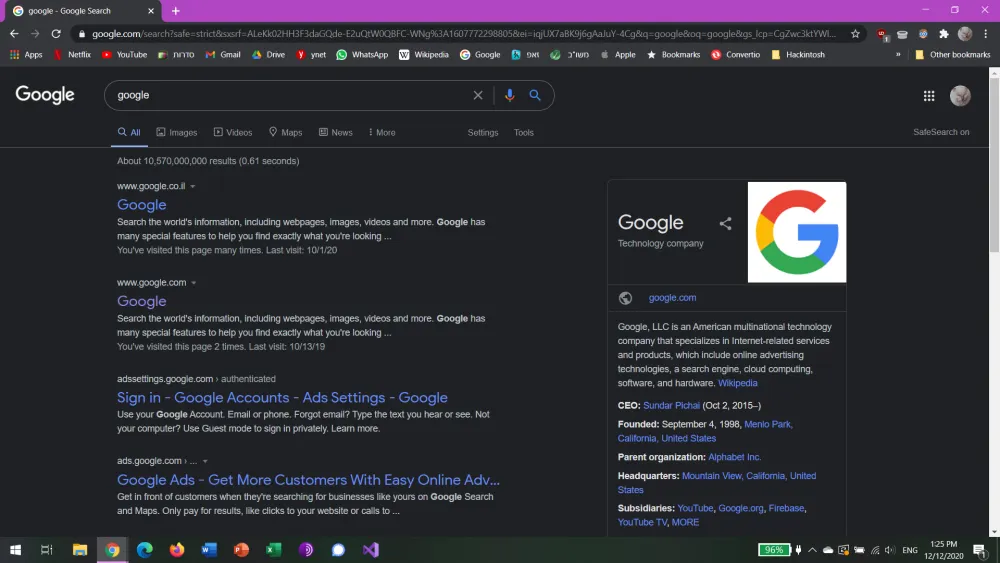 Dilansir dari 9to5Google, Senin (14/12), tampilan latar belakang putih yang biasa kita lihat pada laman pencarian Google Search di desktop akan berganti menjadi rona abu gelap yang menyerupai tampilan dark mode pada versi mobile-nya. Logo Google yang terdiri dari banyak warna tergantikan oleh tulisan Google berwarna putih.