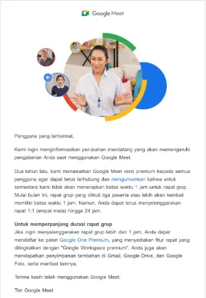Selain itu, Google juga memberitahu pengguna Google Meet melalui email mengenai perubahan ini.