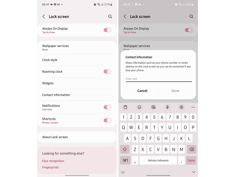 Biasanya di sebagian HP Android, fitur pesan layar kunci dapat ditemukan di Pengaturan Lock Screen atau Layar Kunci. Setelah berada di halaman pengaturan layar kunci, kamu dapat menemukan fitur pada opsi "Informasi kontak", "Tambahkan pesan di layar kunci", atau "Info pemilik di layar kunci" yang dimana tergantung pada brand HP Androidmu.
