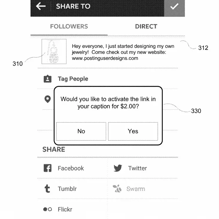 Paten ini berjudul "Adding Paid Links to Media Captions in a Social Networking System" atau secara harafiah berarti penambahan tautan berbayar pada teks media di sistem jejaring sosial.