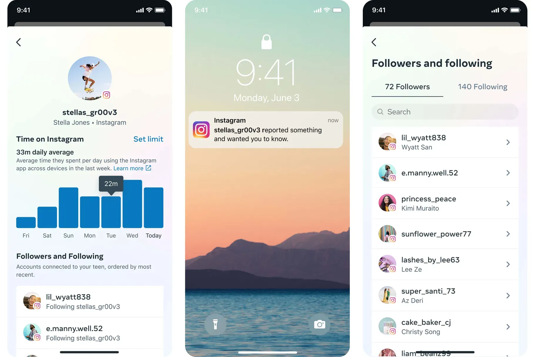 Kepala layanan, Adam Mosseri, menyebut mereka sebagai "perangkat pertama" perusahaan pengawasan orang tua, yang memungkinkan orang tua dan wali untuk melihat dan menetapkan batas jumlah waktu yang dihabiskan anak remaja mereka di Instagram, mendapatkan pembaruan di akun mana mereka sedang mengikuti dan diikuti oleh, dan menerima pemberitahuan ketika mereka melaporkan pengguna lain.