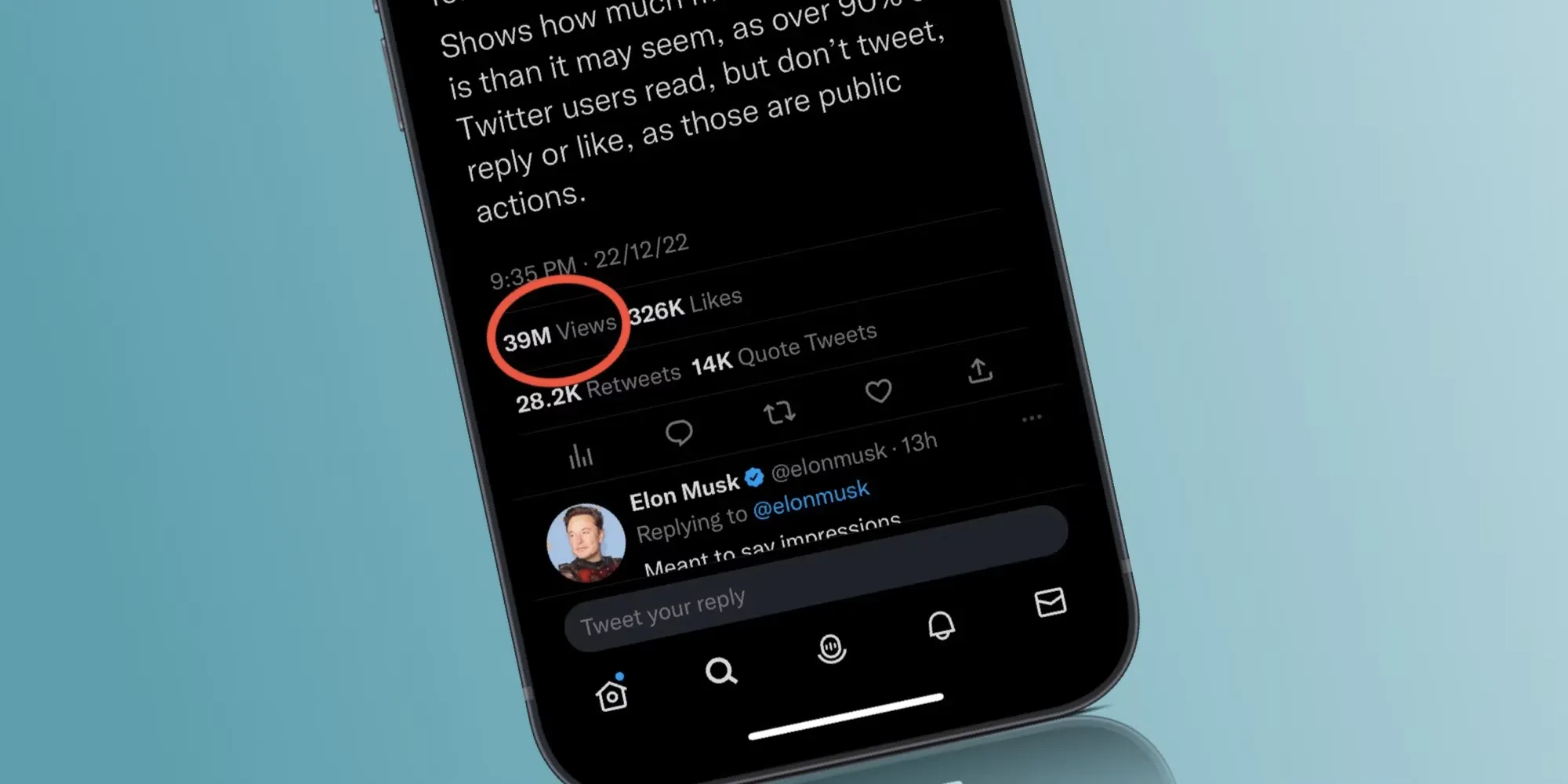 Teknologi.id - Kini pengguna bisa melihat jumlah view dari tweet yang telah dibagikan, layaknya jumlah viewers pada platform YouTube. Elon Musk menyatakan bahwa fitur ini akan membuktikan bahwa Twitter adalah platform Social Media yang lebih hidup daripada yang selama ini kita kira, hanya saja 90% pengguna twitter hanya membaca tweet dan jarang melakukan tidakan publik seperti membagikan tweet maupun komen dan like.