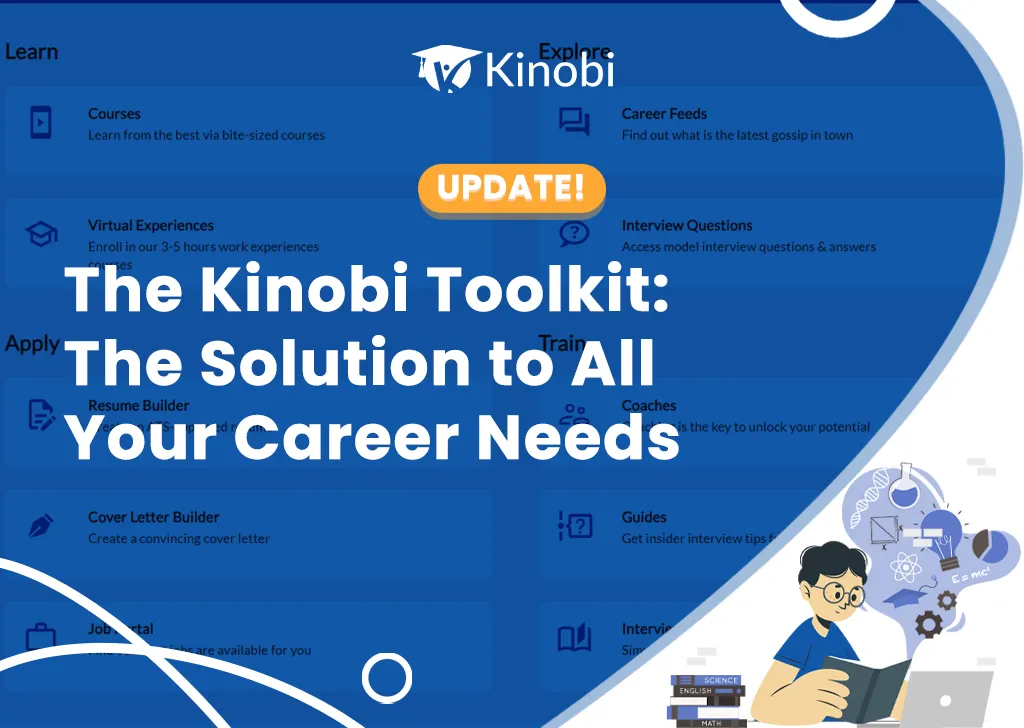 Beberapa fitur atau tools yang dapat kalian maksimalkan penggunaannya dari Kinobi, yaitu courses (pelatihan), resume builder (mesin pembuat resume), cover letter builder (mesin pembuat surat lamaran), interview questions (pertanyaan seputar wawancara), job portal (portal lowongan pekerjaan), dan masih banyak lagi.