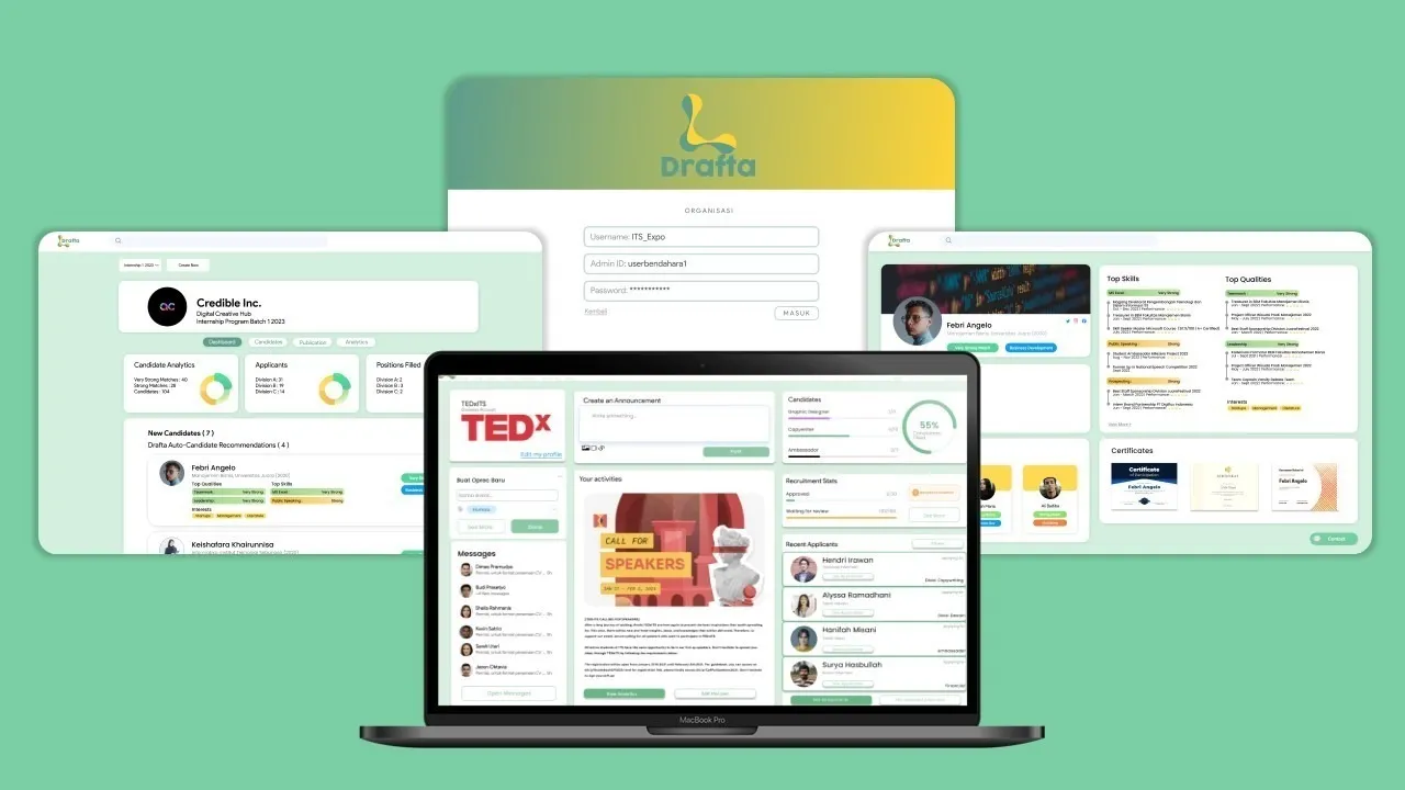 Sekelompok tim yang diketuai oleh Syifa Alina Amri ini merancang aplikasi yang berguna untuk menyinkronkan kriteria perusahaan dengan database dari Drafta.