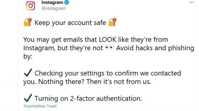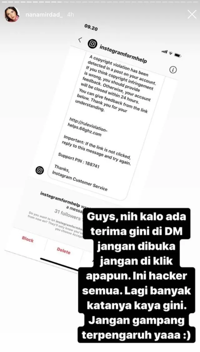 Instagram dengan tegas mengatakan, tidak akan pernah menghubungi pemilik akun secara langsung melalui DM dan telah memperingatkan orang-orang untuk berhati-hati terhadap penipuan ini.