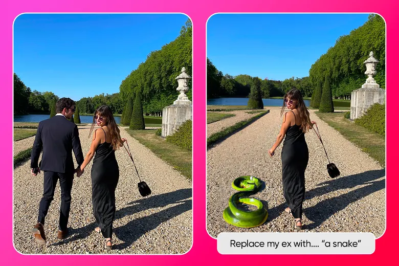 Menggunakan teknologi yang mengandalkan AI, Replace My Ex menyelamatkan foto yang diambil ketika bersama dengan orang yang tidak ingin diinginkan dalam satu foto dengan menggantinya dengan barang apapun yang diinginkan. Seperti bendera merah, tempat sampah, ular mainan, dan barang apapun yang diinginkan pengguna.