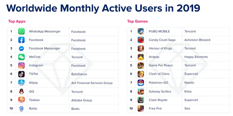 Dilansir dari KompasTekno, WhatsApp menempati posisi sebagai aplikasi pesan instan paling populer secara global pada tahun 2019 berdasarkan jumlah pengguna aktif bulanan (monthly active users/MAU) dari rating yang dilaporkan oleh App Annie.