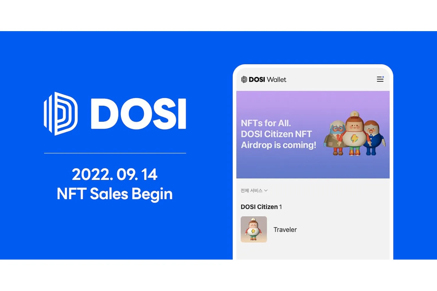 Pengguna yang telah membuat dompet DOSI akan menerima NFT PFP (gambar profil) yang unik dan dapat dipakai untuk DOSI Citizen, program keanggotaan platform berbasis NFT dari DOSI. Sebagai warga DOSI, pengguna memiliki kesempatan untuk tumbuh bersama sebagai kontributor di ekosistem DOSI. Setelah peluncuran DOSI, beberapa NFT eksklusif akan dirilis dari pencipta Webtoon Hellbound. Hellbound akan menjual 500 NFT selama 96 jam mulai pukul 8 malam PDT pada 14 September 2022 (Waktu Korea). NFT yang dirilis terinspirasi oleh seri Hellbound.