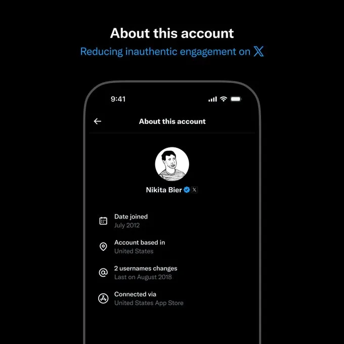 “Kami bereksperimen dengan menampilkan informasi baru pada profil, termasuk negara tempat akun tersebut berada, di antara detail lainnya” tulis Nikita Bier, kepala produk X.