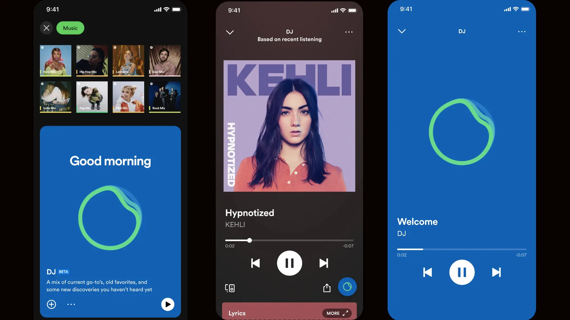 Berdasarkan profil selera musik Anda, DJ Spotify akan memindai rilisan baru yang diprediksi akan kamu sukai atau menampilkan kembali lagu yang sudah sering kamu putar di masa lalu. Fitur ini juga terus memperbarui daftar lagu berdasarkan umpan balik pengguna. Jika pengguna tidak tertarik dengan playlist yang dimainkan oleh DJ, pengguna dapat mengklik tombol "DJ" untuk melompat ke genre atau suasana hati berikutnya.