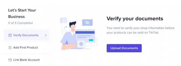Mulai bisnis Anda dan verifikasi dokumen Anda untuk menyiapkan akun TikTok Shop.