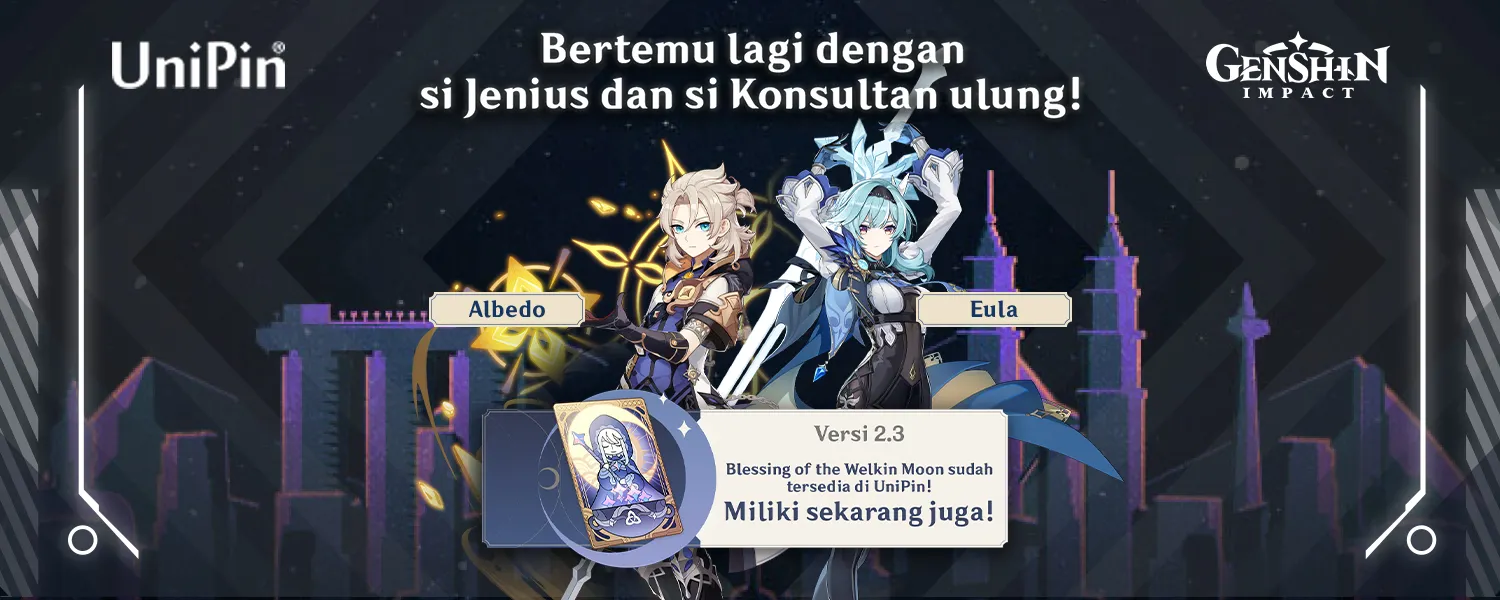 Jakarta, 24 November 2021 – Dalam menyambut rilisan terbaru dari gim miHoYo, Genshin Impact, UniPin meluncurkan Blessing of The Welkin Moon bagi seluruh pemain dan penggemar di seluruh Asia Tenggara. Blessing of The Welkin Moon merupakan penawaran yang menyediakan 300 Genesis Crystals dan 2700 total Primogems kepada seluruh pemain selama 30 hari setelah pembelian. Penawaran ini akan tersedia di situs resmi UniPin, unipin.com mulai tanggal 24 November 2021.