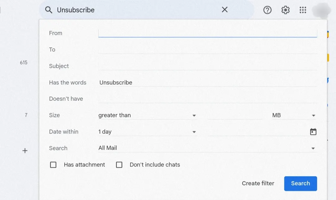 - Pada kolom pencarian, ketik "Unsubscribe".