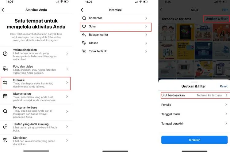 - Terakhir, klik Apply. Kamu akan langsung melihat daftar postingan pertama yang pernah kamu sukai dari urutan pojok kiri paling atas.
