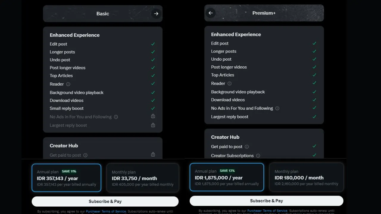 Berikut adalah rincian harga paket langganan X Twitter baik untuk Basic maupun Premium Plus di Indonesia: