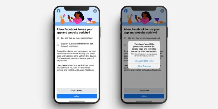Facebook kemudian mencoba mengimbangi fitur baru Apple dengan memberikan notifikasi yang mendorong pengguna untuk mengizinkan pelacakan aktivitas. Notifikasi ini akan muncul ketika pengguna membuka aplikasi Facebook lewat iPhone atau iPad. Notifikasi tersebut akan muncul sebelum pemberitahuan privasi Apple. Pengguna kemudian akan dihadapkan dengan pilihan “Allow” atau “Don’t Allow”. Setelah itu, pengguna akan dihadapkan dengan pemberitahuan privasi Apple sendiri yang menanyakan apakah pengguna ingin dilacak.