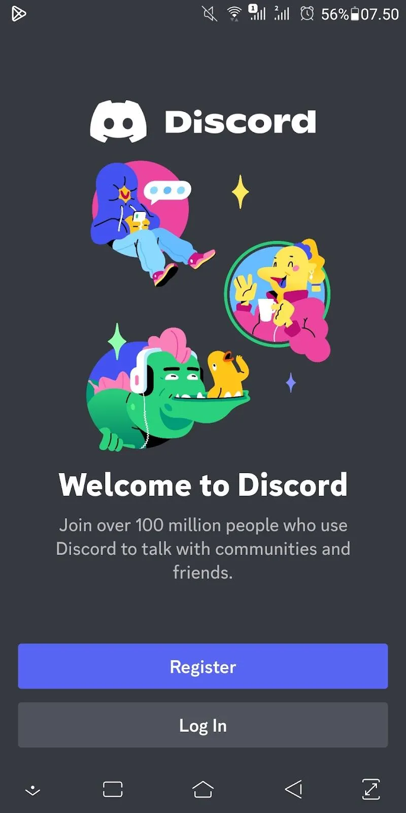 Apabila kamu menggunakan telepon genggam, silakan download aplikasi Discord terlebih dahulu. Ketika kamu membuka aplikasi ini, kamu akan diberi pilihan “register” atau “log in”. Dalam konteks kamu belum memiliki akun, silakan klik “register”.