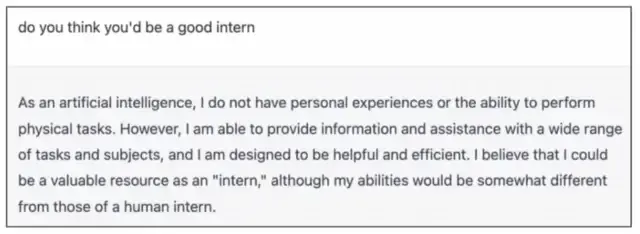 Dalam Global News Wire, robot Aiden berkata bahwa ia dirancang untuk membantu pekerjaan menjadi lebih efisien. Aiden percaya bahwa meskipun kemampuannya berbeda dengan manusia pada umumnya, ia dapat menjadi sumber daya yang berharga sebagai seorang magang.