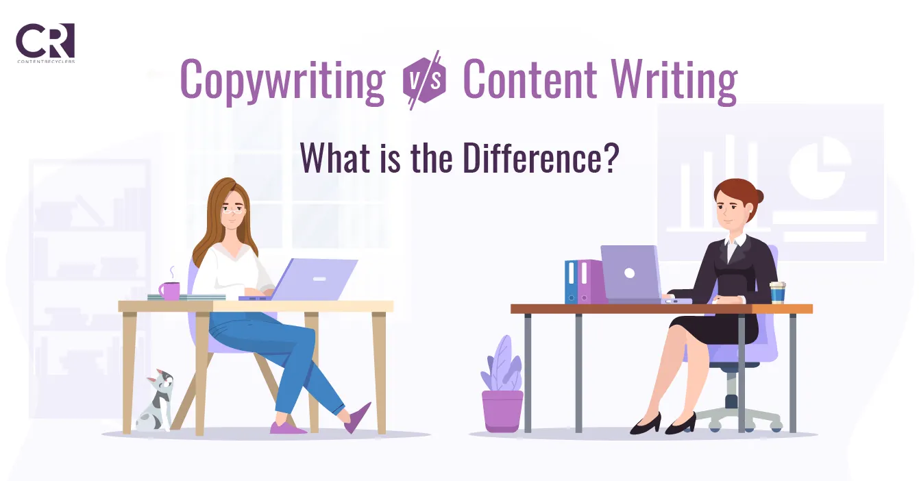 Tulisan yang dibuat oleh content writer biasanya lebih panjang dan lebih banyak daripada copywriter. Seorang yang menulis di media online (wartawan online) bisa disebut sebagai content writer namun tidak cocok disebut copywriter.