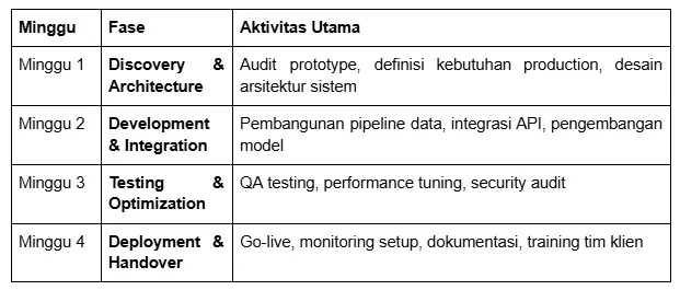 Sagara mengadopsi filosofi ini dalam setiap proyek AI mereka. Berikut adalah framework 30 hari yang mereka gunakan: