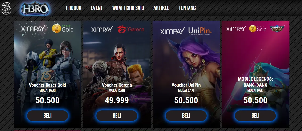 Foto : Tampilan voucher game pada website H3RO