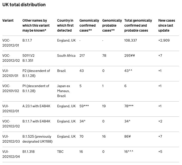 Public Health England (PHE) menetapkan delapan varian ini sebagai Variant Under Investigation (VUI), yang berarti sedang dalam daftar pantauan mereka.