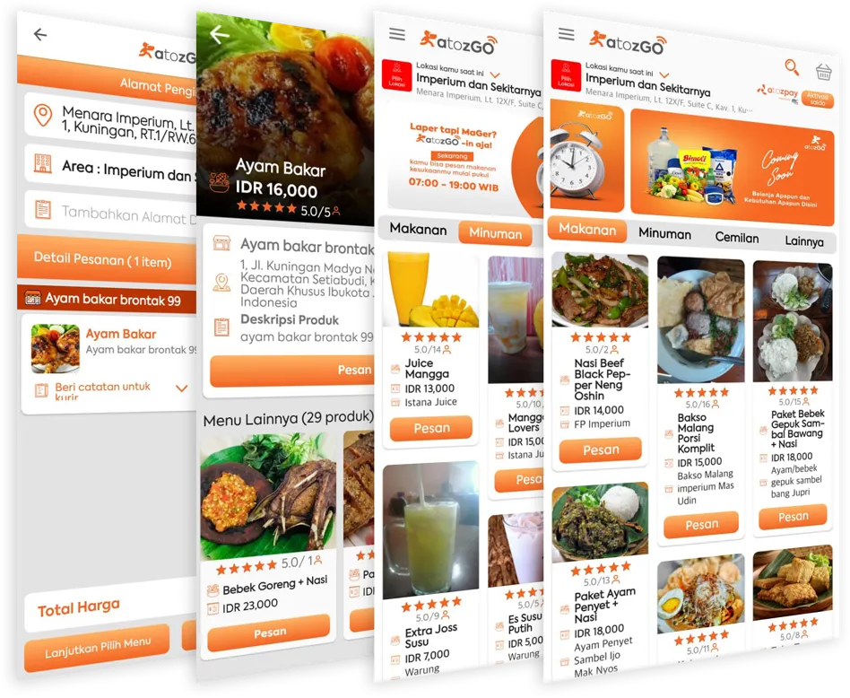 Tidak hanya menawarkan jasa pesan antar makanan, atozGO juga memiliki layanan yang membantu pelanggannya untuk membeli berbagai barang keperluan di sekitarnya. Ada pula jasa-jasa lain yang relevan, seperti jasa membersihkan kantor atau apartemen, serta penyemprotan desinfektan.