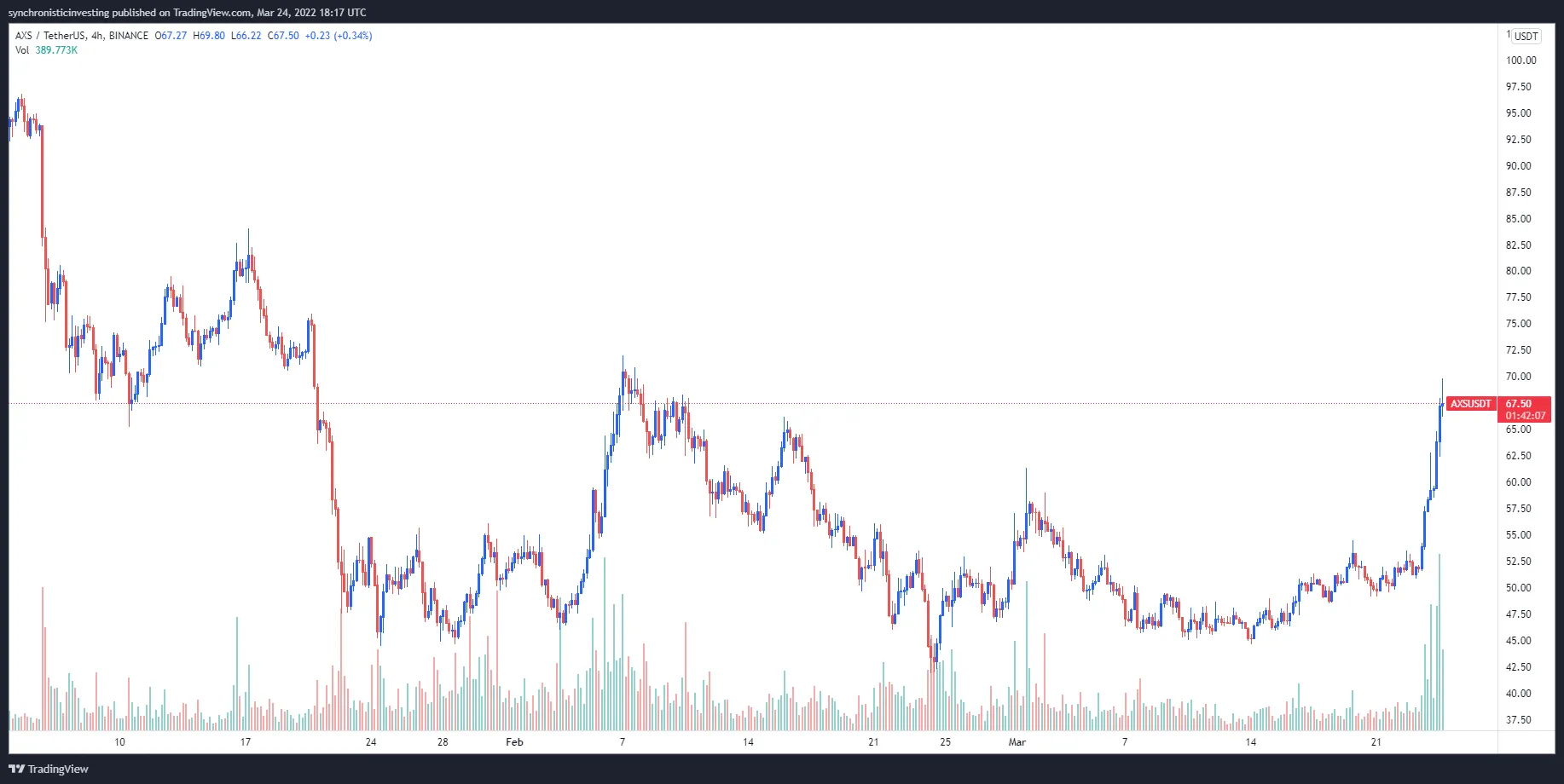 Fenomena ini berhasil mengangkat AXS ke level tertinggi harian di rentan $69,82 pada 24 Maret kemarin.