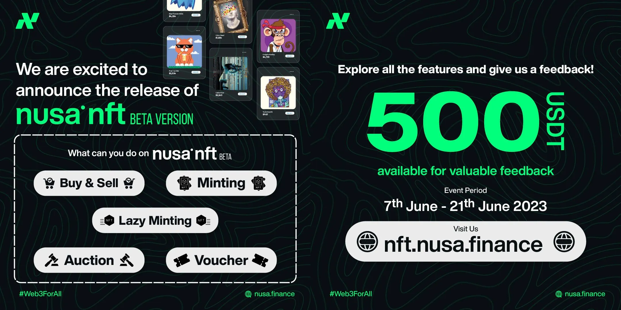 Nusa Finance - NUSA NFT adalah sebuah marketplace khusus NFT di jaringan Polygon yang menyediakan layanan jual-beli NFT dengan berbagai fitur unggulan. Resmi dirilis pada tanggal 7 Juni 2023 lalu, versi beta dari NUSA NFT ini juga membuka survey pengguna dengan menyediakan total hadiah sebesar 500 USDT.