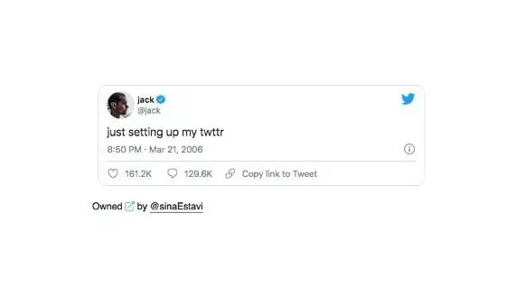 Jack Dorsey menandatangani NFT tersebut untuk meresmikannya. Selain itu, NFT ini juga termasuk ke dalam rentetan NFT termahal di dunia.