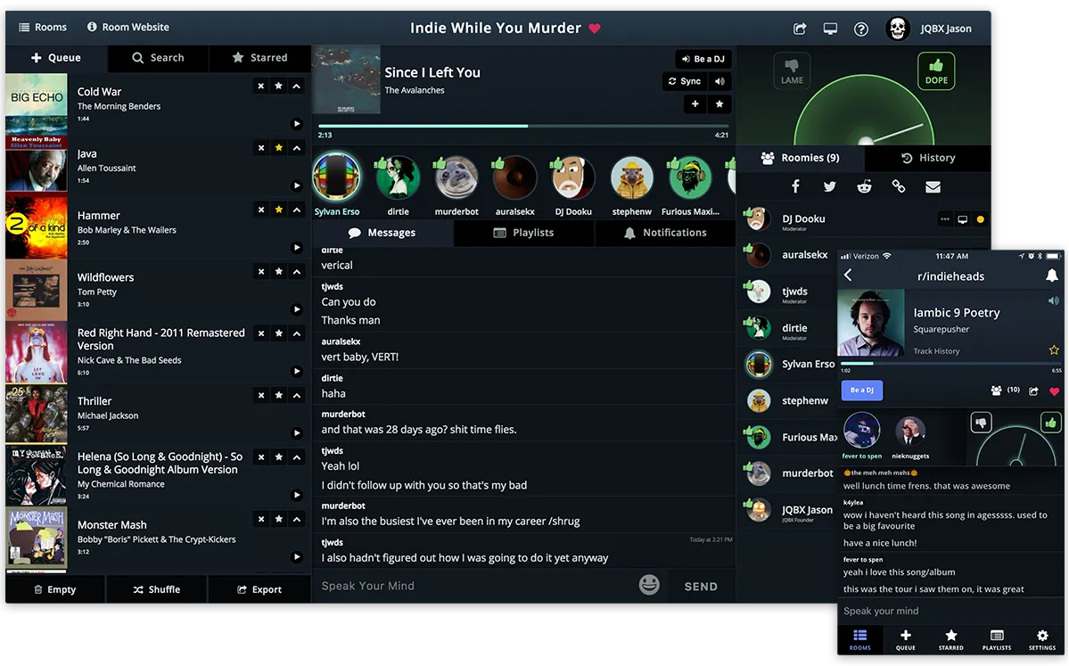 Spotify tetap menjadi platform streaming musik bagi banyak orang, oleh karena itu, ada beberapa aplikasi pihak ketiga yang menggabungkan layanan untuk memungkinkan mendengarkan musik secara sinkron dengan teman atau publik. JQBX (JUKEBOX), adalah salah satu yang terbaik dalam hal fitur dan user-friendly.