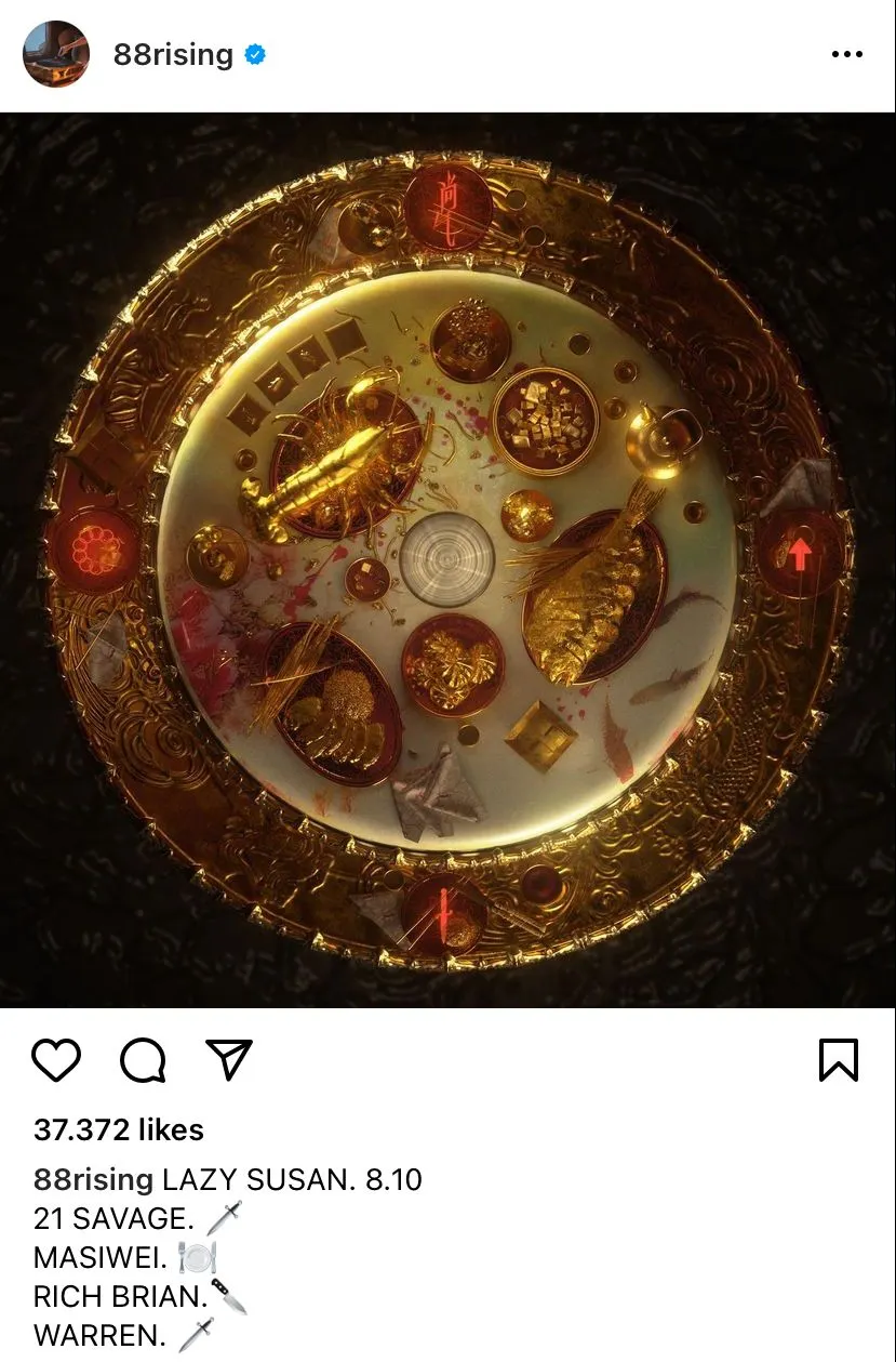 Lagu tersebut berada di bawah naungan label 88rising akan menampilkan 4 rapper, 21 Savage, Masi Wei, Rich Brian dan Warren Hue. 88rising sendiri tela mengumumkan "Lazy Susan" sebagai lagu tema film Marvel Shang-Chi di akun instagram nya.